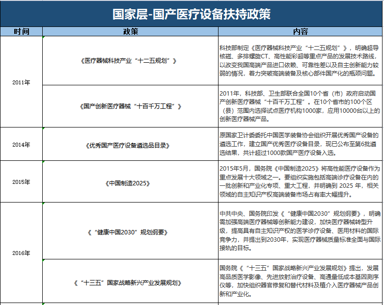 對(duì)此相關(guān)業(yè)內(nèi)人士表示,本次采購(gòu)甚至不排除后續(xù)會(huì)對(duì)國(guó)產(chǎn)設(shè)備的采購(gòu)比例有更細(xì)節(jié)的指導(dǎo)要求。且這已不是國(guó)家首次大力推進(jìn)醫(yī)療新基建建設(shè),并支持國(guó)產(chǎn)醫(yī)療設(shè)備。