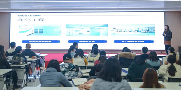 首先,山東建筑大學外國語學院師生一行觀看了博科集團企業宣傳片,對集團有了初步的認識。隨后,相月明女士就集團整體概況、發展歷程及戰略規劃進行了詳細介紹,并邀請美華國際業務主管于倩倩女士與學弟學妹們分享工作經驗和規劃。